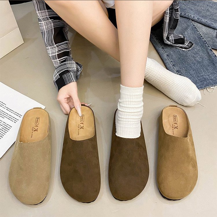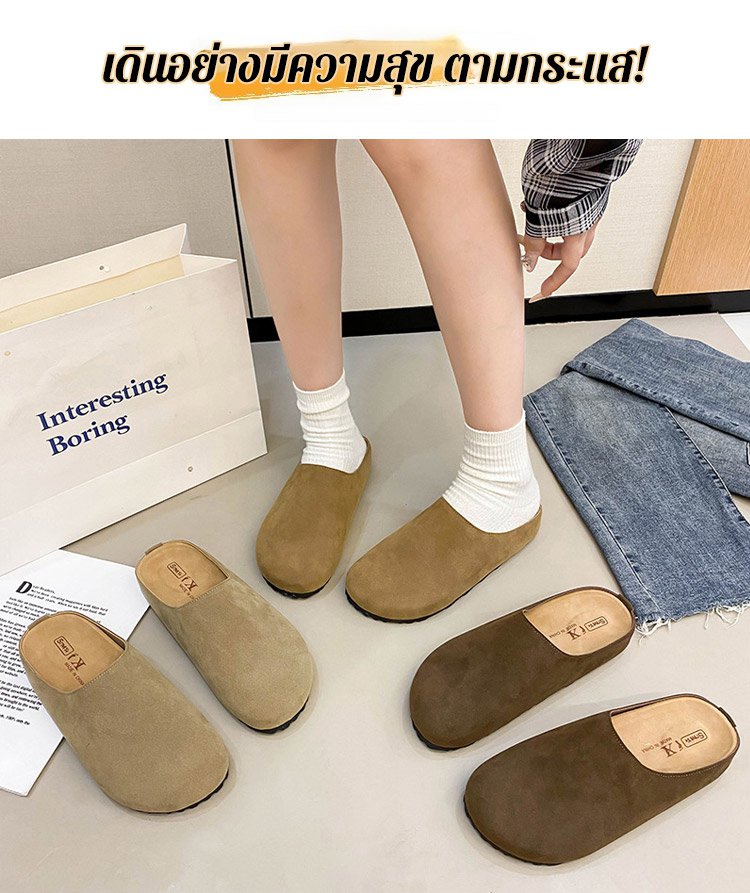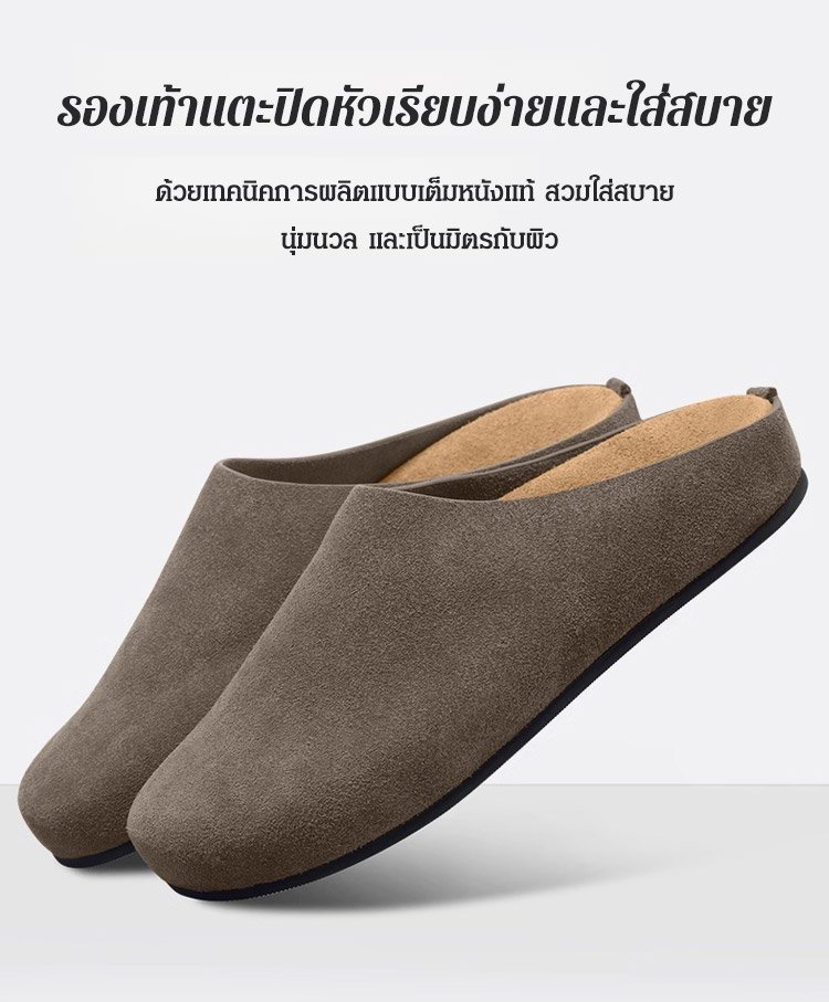 รองเท้าแตะปิดหัวพื้นนุ่มหนังแท้
